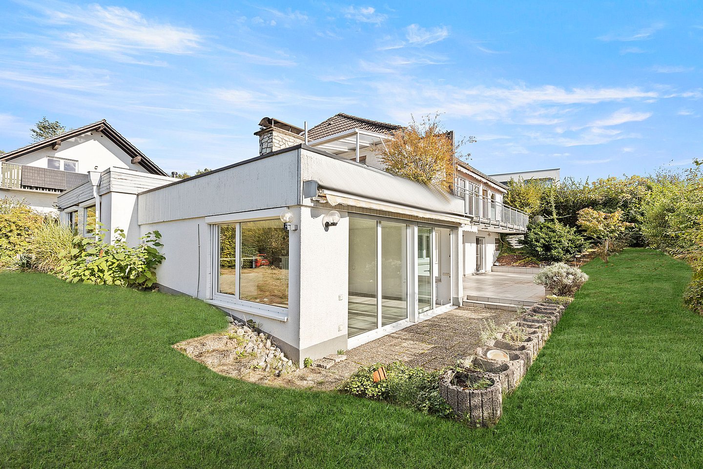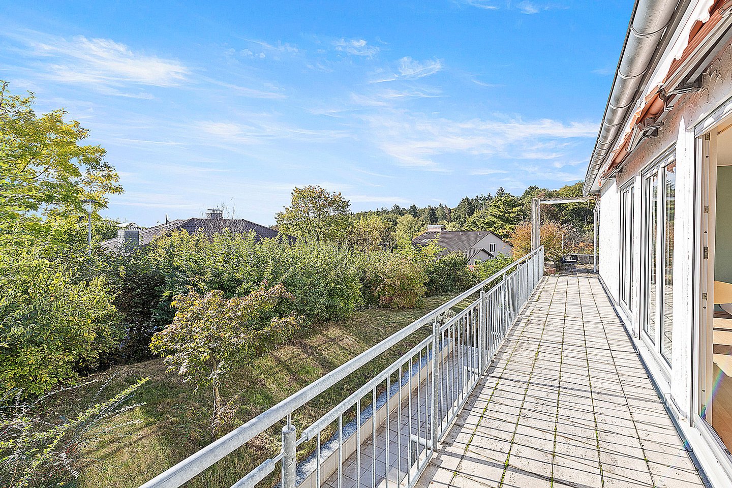 Das Objekt befindet sich auf einem großzügigen Grundstück von 829 m² und verfügt über zahlreiche Außenbereiche, die zum Entspannen und Verweilen einladen. Ein schöner Balkon, zwei Terrassen und ein gepflegter Garten bieten vielfältige Möglichkeiten zur Gestaltung und zum Genießen der Natur. Von der oberen Terrasse aus können Sie sogar bis zur Frankfurter Skyline blicken.
