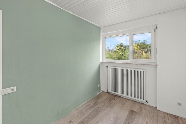 Das Haus befindet sich an zwei Sackgassen, was für eine besonders ruhige und verkehrsberuhigte Lage sorgt. Der Wald ist nur 150 Meter entfernt und bietet eine optimale Möglichkeit für Naturliebhaber, die das nahe Grün für Spaziergänge und Erholung nutzen möchten. Die Immobilie kombiniert somit eine naturnahe Umgebung und familienfreundliches Wohnen mit guter Anbindung an die Stadt.