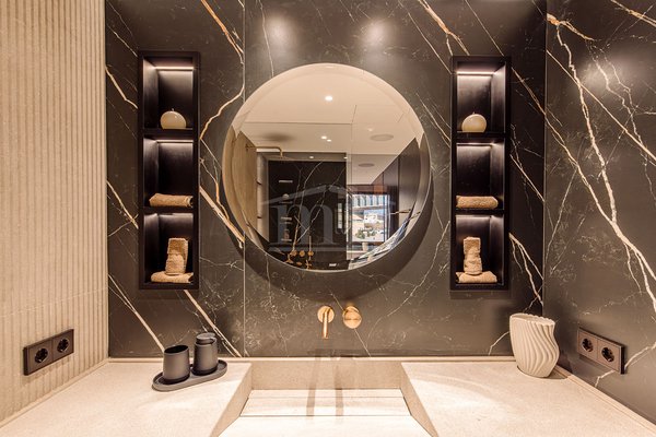 Ein privater Eingangsbereich mit Sicherheitstür, Kamerasystem und Fingerabdruck-Zugang sowie Stauraum und Platz für Fahrräder bietet zusätzliche Exklusivität.