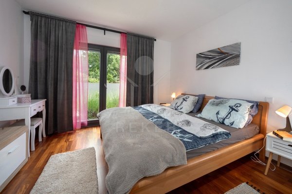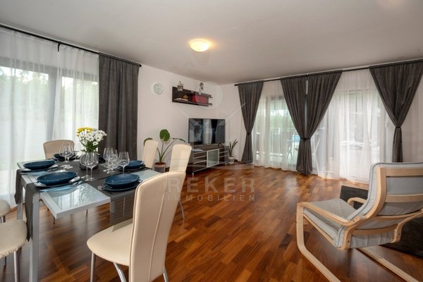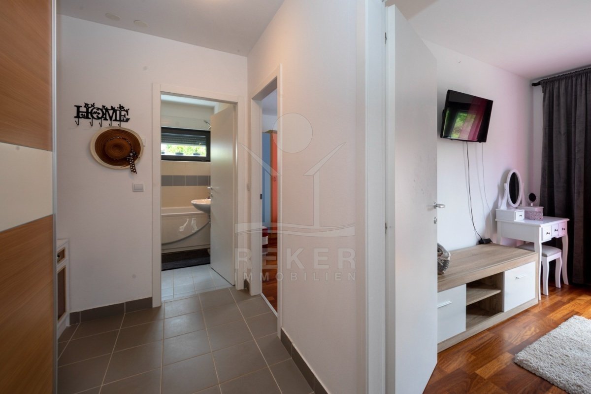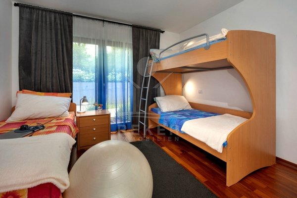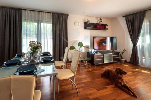 Großer Garten, Pool, Waldrandlage, separater Eingang und gepflegter Zustand, Baujahr 2012. Diese Erdgeschosswohnung vereint mehrere seltene Merkmale in Poreč. Ob zur Eigennutzung oder touristischen Vermietung: Die Kombination aus Lage, Komfort und Außenfläche überzeugt.