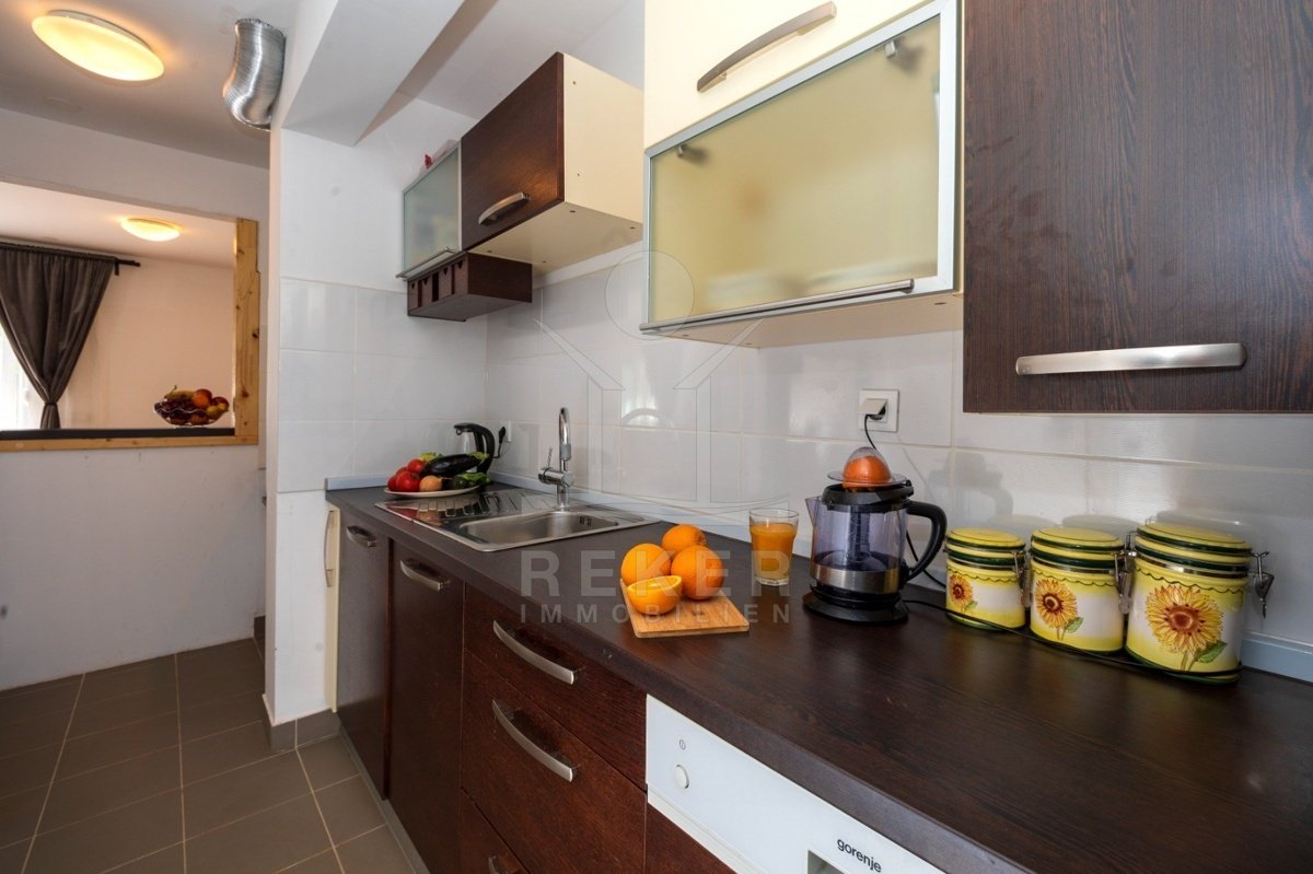 Diese gepflegte Erdgeschosswohnung überzeugt mit einer außergewöhnlich ruhigen Wohnlage in Poreč, direkt am Waldrand. Gleichzeitig erreichen Sie das Meer nach rund 1.300 Metern. Das Stadtzentrum befindet sich ca. 2.500 Meter entfernt. Einkaufsmöglichkeiten, Schule und die städtische Infrastruktur sind bequem erreichbar. Zwei private Parkplätze stehen Ihnen direkt am Objekt zur Verfügung.