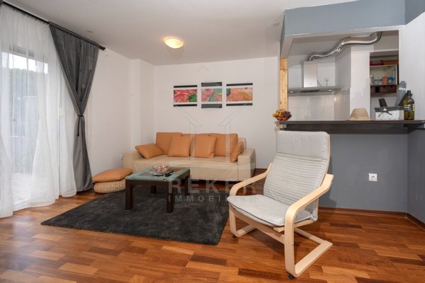 Diese gepflegte Erdgeschosswohnung überzeugt mit einer außergewöhnlich ruhigen Wohnlage in Poreč, direkt am Waldrand. Gleichzeitig erreichen Sie das Meer nach rund 1.300 Metern. Das Stadtzentrum befindet sich ca. 2.500 Meter entfernt.