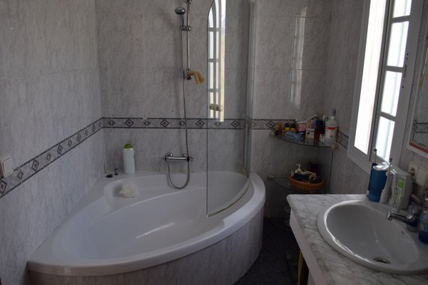Im ersten Stock befinden sich 3 Schlafzimmer, ein Badezimmer und Zugang zu einer großen Terrasse mit Markisen.