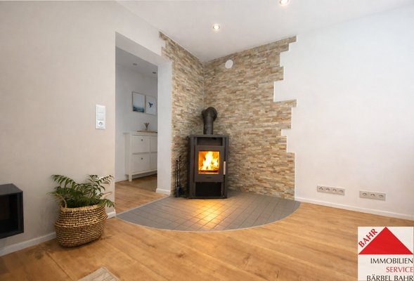 Die Wohnung punktet mit durchdachtem Raumkonzept und gemütlichem Flair: vom großen, einladend hellen Wohnzimmer mit Kaminofen geht es auf den sonnigen, großen Balkon mit Blick ins Grüne.