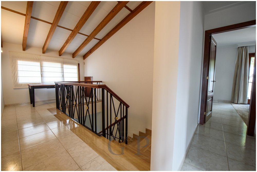 Im Obergeschoss befinden sich drei komfortable Doppelschlafzimmer, die Rückzug und Privatsphäre garantieren. Das Hauptschlafzimmer verfügt über ein eigenes Bad en suite, eine private Terrasse und einen herrlichen Blick auf den Pool. Ein weiteres Schlafzimmer bietet ebenfalls eine Terrasse mit Poolblick, während das dritte Zimmer mit Balkon und Meerblick einen besonderen Akzent setzt.