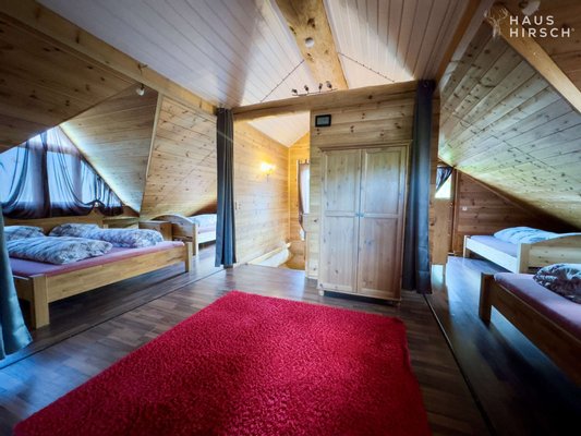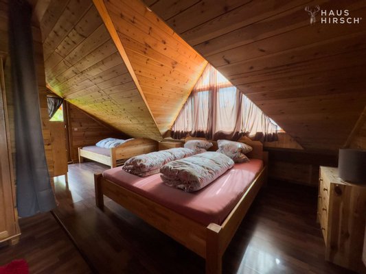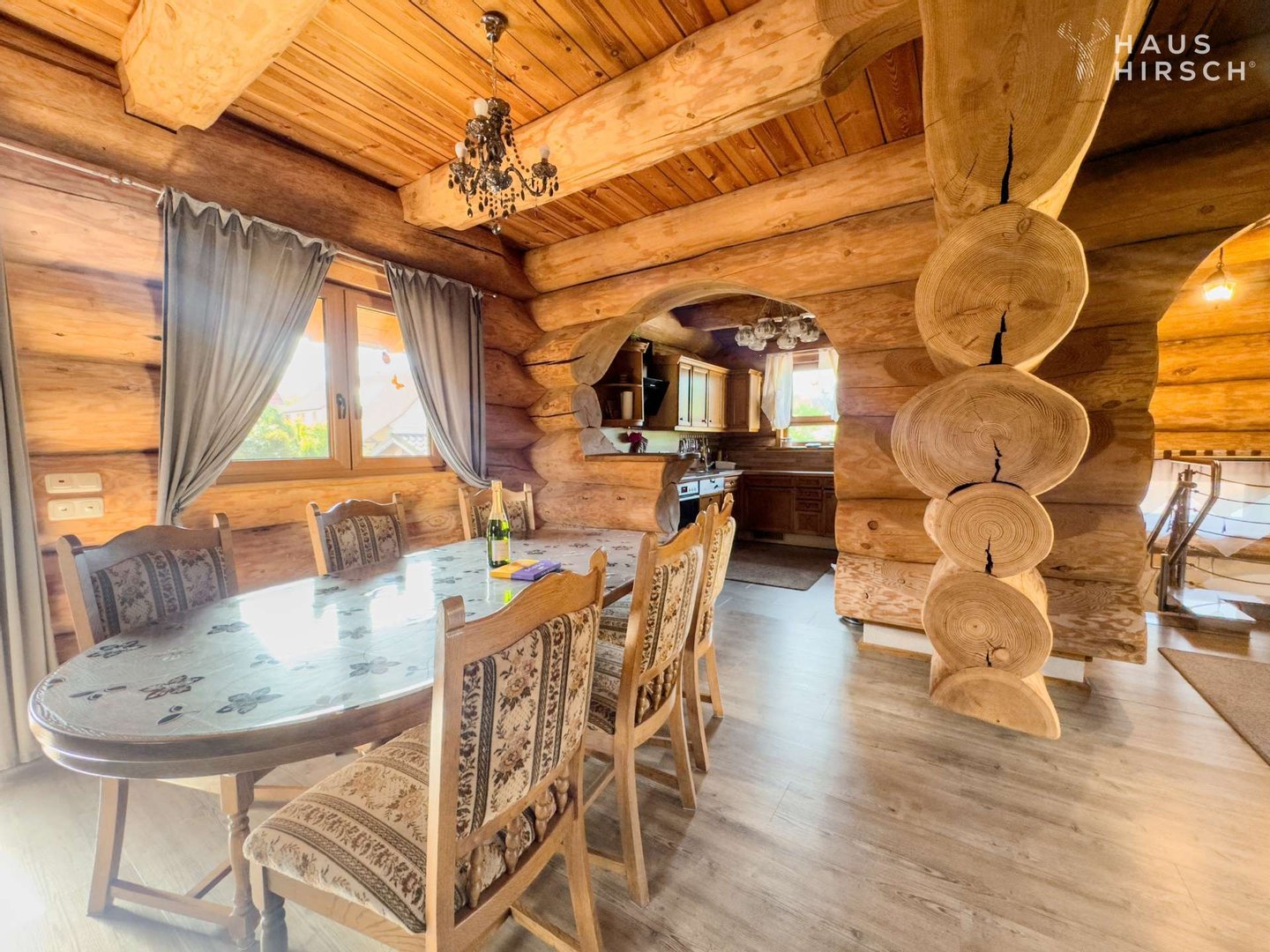 • Authentischer Douglasien-Stammholzbau auf drei Stockwerken