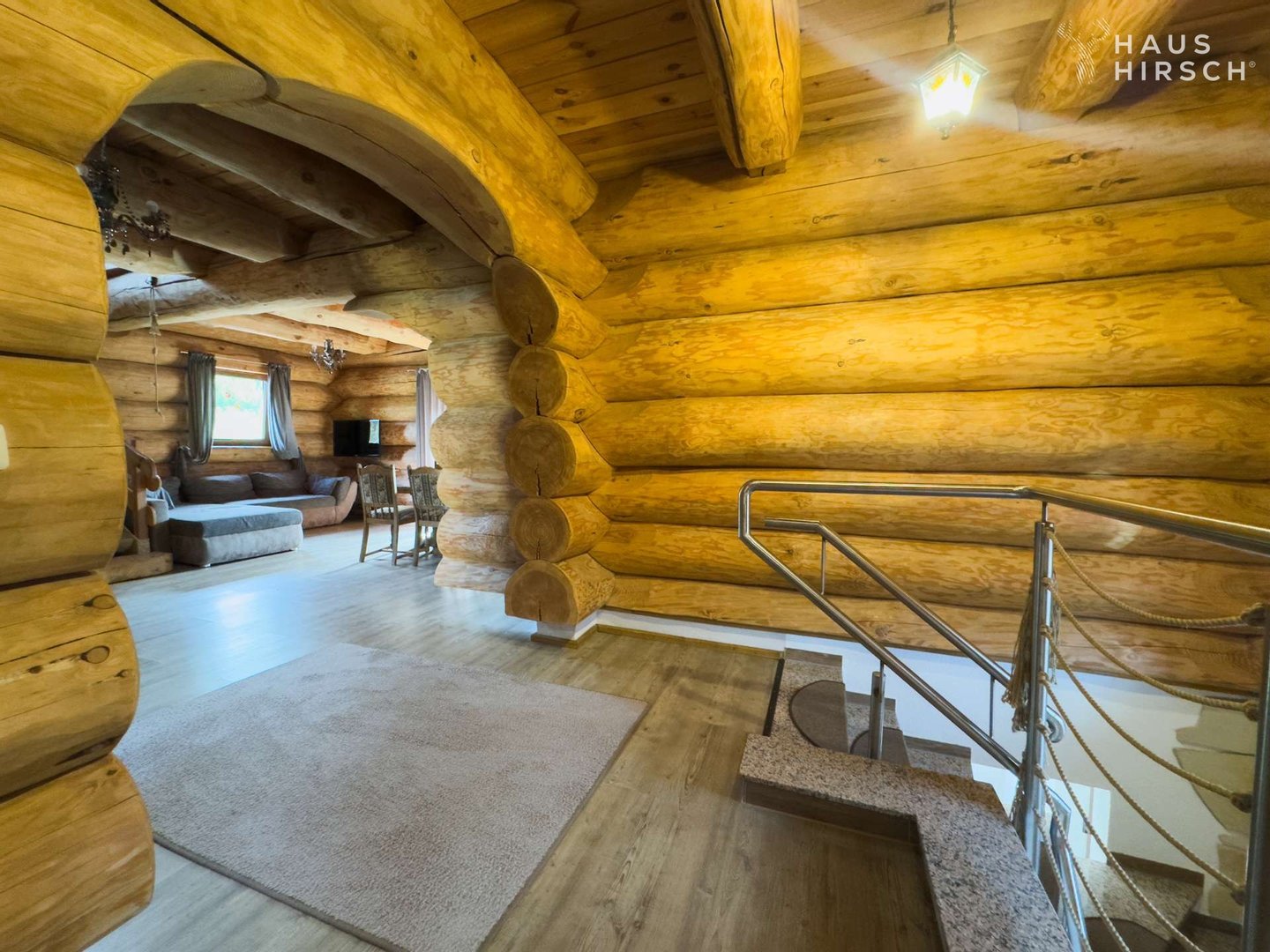 Das Douglasie-Stammholzhaus besticht durch eine durchdachte und hochwertige Ausstattung, die rustikalen Charme mit modernem Komfort perfekt verbindet. Die Innenräume verteilen sich auf drei Etagen und bieten ca. 220 m² Wohnfläche, die individuell genutzt und gestaltet werden können. Die großzügigen, lichtdurchfluteten Räume strahlen eine warme, natürliche Atmosphäre aus, die durch die hochwertigen Holzelemente und die behutsame Planung noch verstärkt wird.