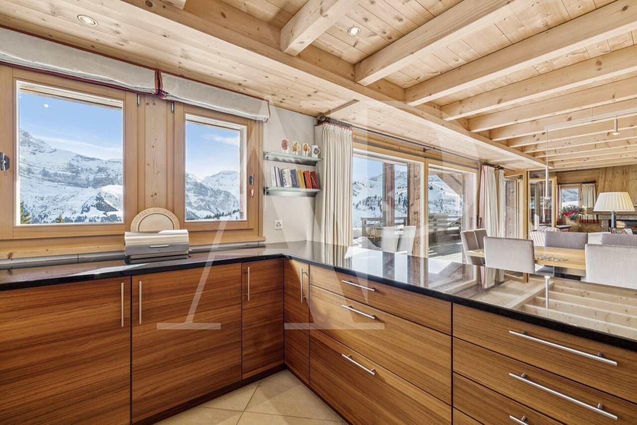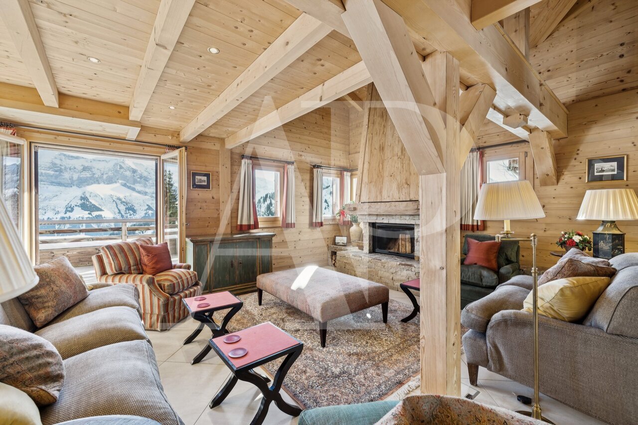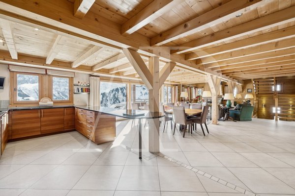 Begünstigt durch eine privilegierte Lage direkt an der Piste, außer Sichtweite und mit Blick auf die majestätischen Bergketten, erstreckt sich dieses außergewöhnliche Anwesen über drei Ebenen und bietet einen spektakulären Panoramablick.