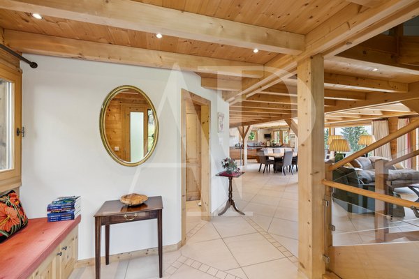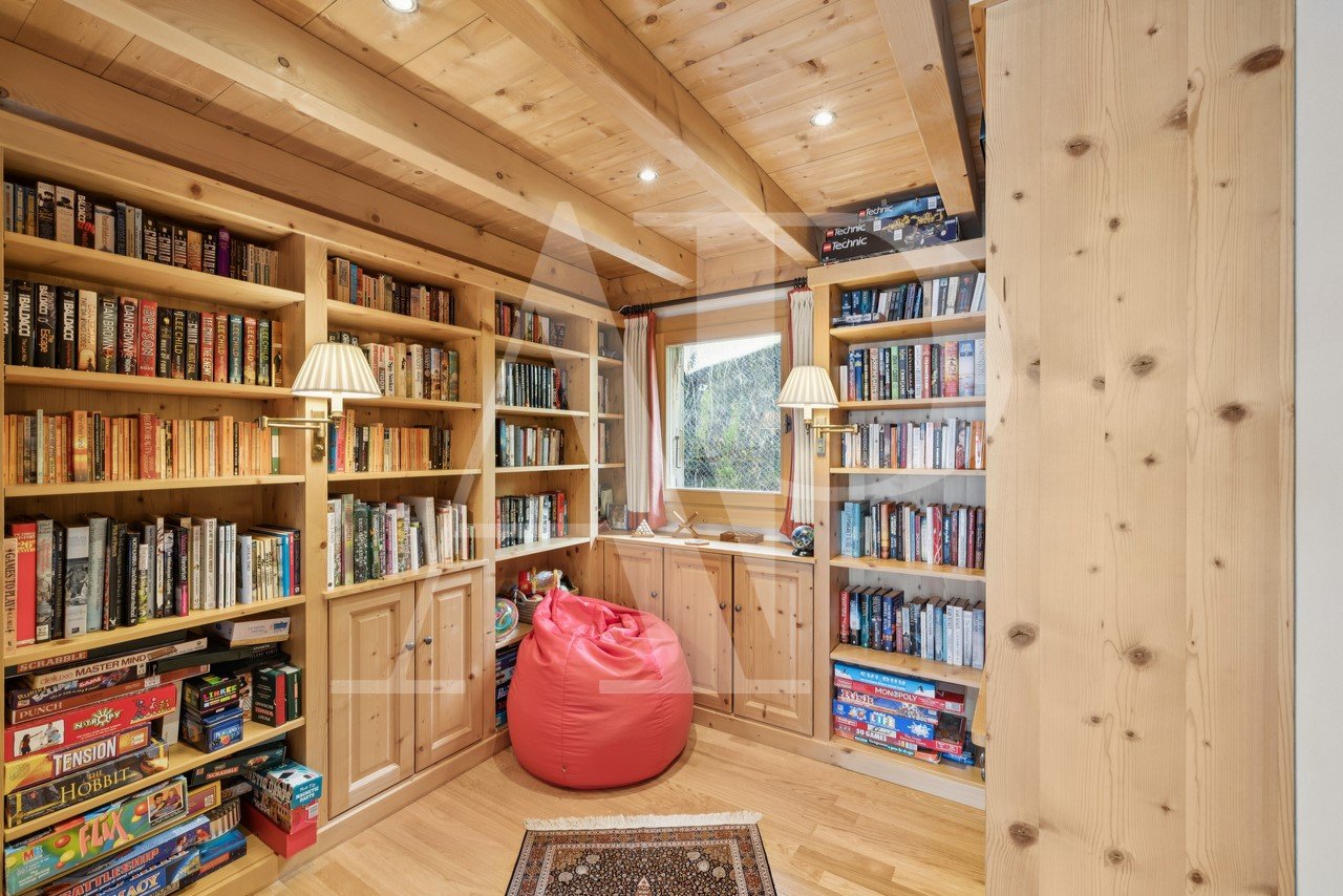 Im Erdgeschoss befinden sich ein großer Empfangsbereich, ein prächtiges Wohnzimmer mit Kamin, ein Esszimmer, eine große offene Küche und eine Bibliothek. Die Hauptwohnbereiche - Küche, Wohnzimmer und Esszimmer - bieten alle einen atemberaubenden Blick auf die Bergkette Dents du Midi und haben direkten Zugang zu einer herrlichen Terrasse.