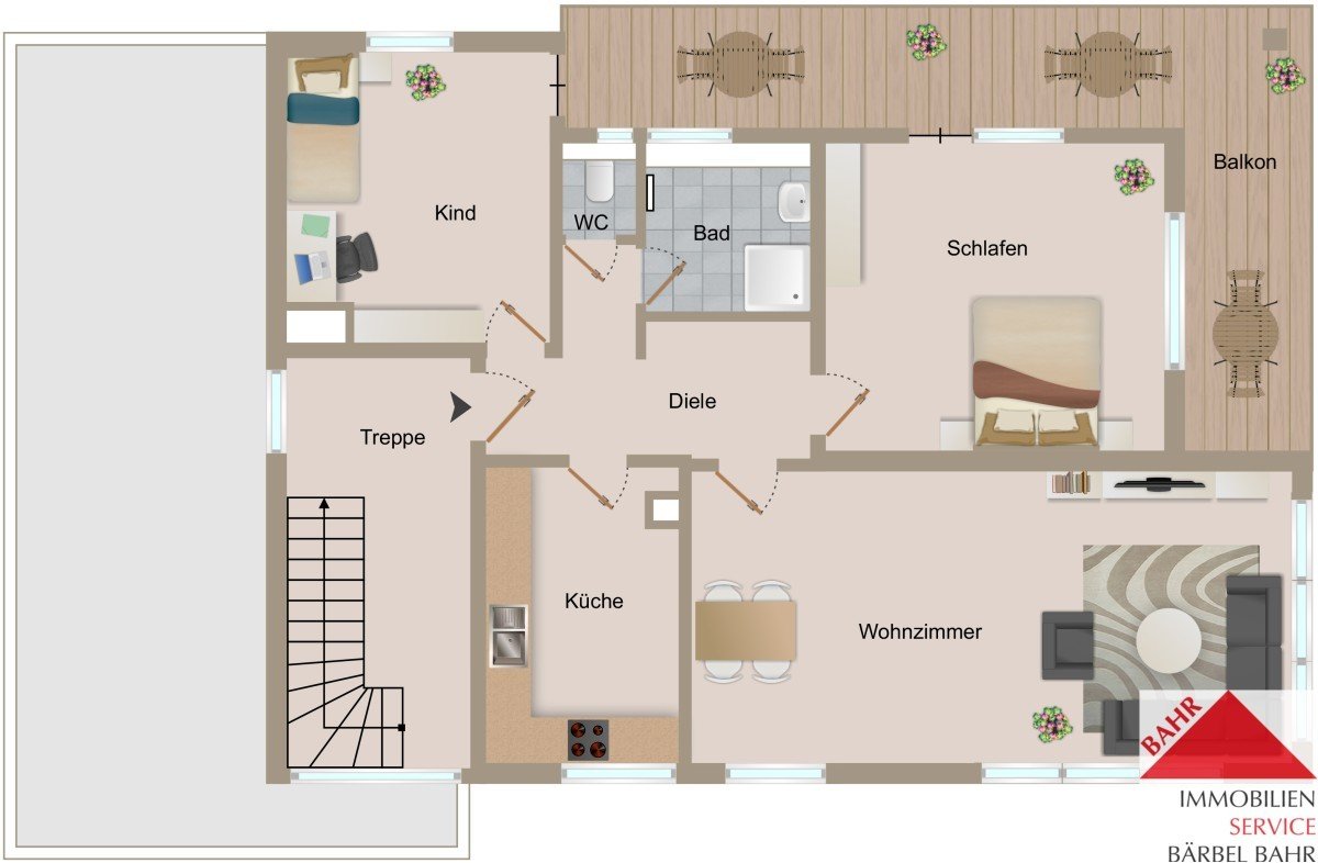 Vom Schlafzimmer als auch vom Kinderzimmer gibt es einen Zugang zum sonnigen,