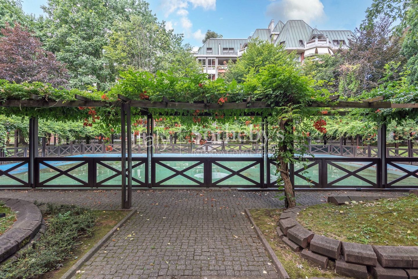 Die Wohnung befindet sich in einer kürzlich vollständig renovierten Wohnanlage, umgeben von einem gepflegten und üppigen Gemeinschaftsgarten. Sie liegt im vierten Obergeschoss und bietet ein hohes Maß an Privatsphäre, Helligkeit und Ruhe.
