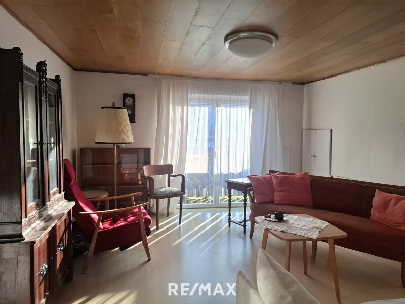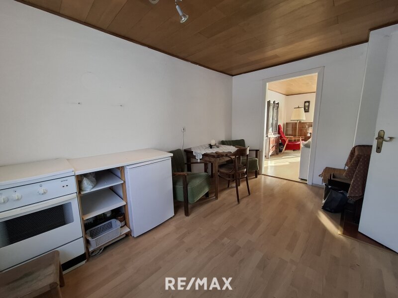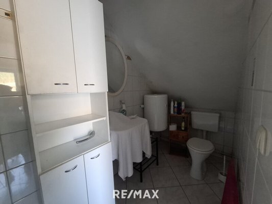Über die Treppe gelangen Sie ins Obergeschoss, wo Sie ein helles Wohnzimmer mit Zugang zum Balkon erwartet. Unter anderem erwarten Sie noch eine weitere Küche, ein Gästezimmer sowie ein Bad mit Dusche und WC. Zusätzlich steht ein Abstellraum zur Verfügung.