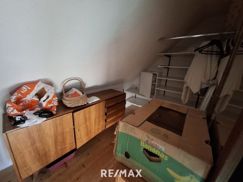 Über die Treppe gelangen Sie ins Obergeschoss, wo Sie ein helles Wohnzimmer mit Zugang zum Balkon erwartet. Unter anderem erwarten Sie noch eine weitere Küche, ein Gästezimmer sowie ein Bad mit Dusche und WC. Zusätzlich steht ein Abstellraum zur Verfügung.