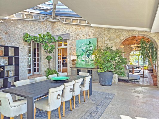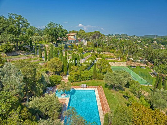 300 m vom alten Dorf Mougins entfernt gelegen, trägt dieses einzigartige Anwesen aus dem Beginn des letzten Jahrhunderts den Charme und den Adel dieser sogenannten verrückten Jahre. In einer dominanten Lage auf dem Hügel Mougins gelegen, ist es nur