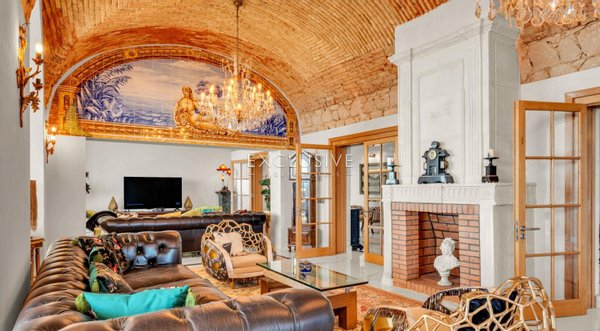 Im Esszimmer finden Sie vierfach verglaste runde Drehfenster, die speziell für dieses Haus entworfen wurden. Die traditionellen Ziegelkuppeldecken wurden sorgfältig restauriert.