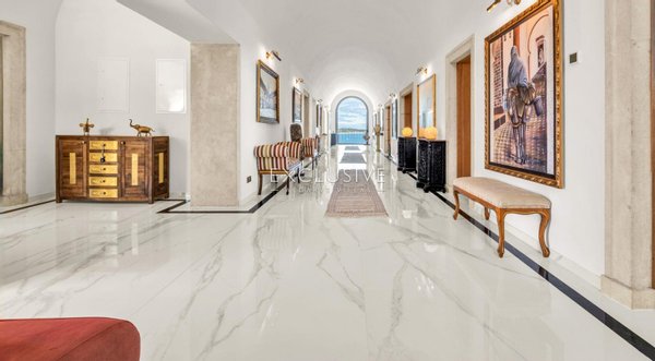 Die Villa verfügt im Erdgeschoss über einen beeindruckenden Haupteingang mit einem Flur, der zu einem atemberaubenden Meerblick führt. Es gibt ein separates Büro, eine renovierte traditionelle Kapelle mit Seiteneingang und ein sehr großes offenes Wohn- und Esszimmer mit ca. 160M2. Durch elektrische Schiebetüren gelangen Sie in den Garten mit voll ausgestatteter Außenküche und Grillplatz.