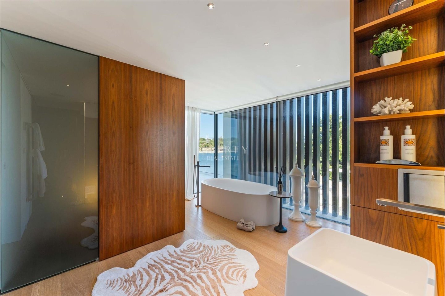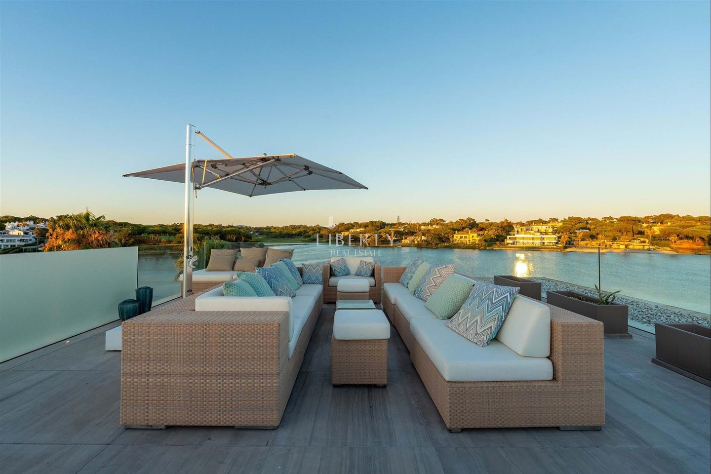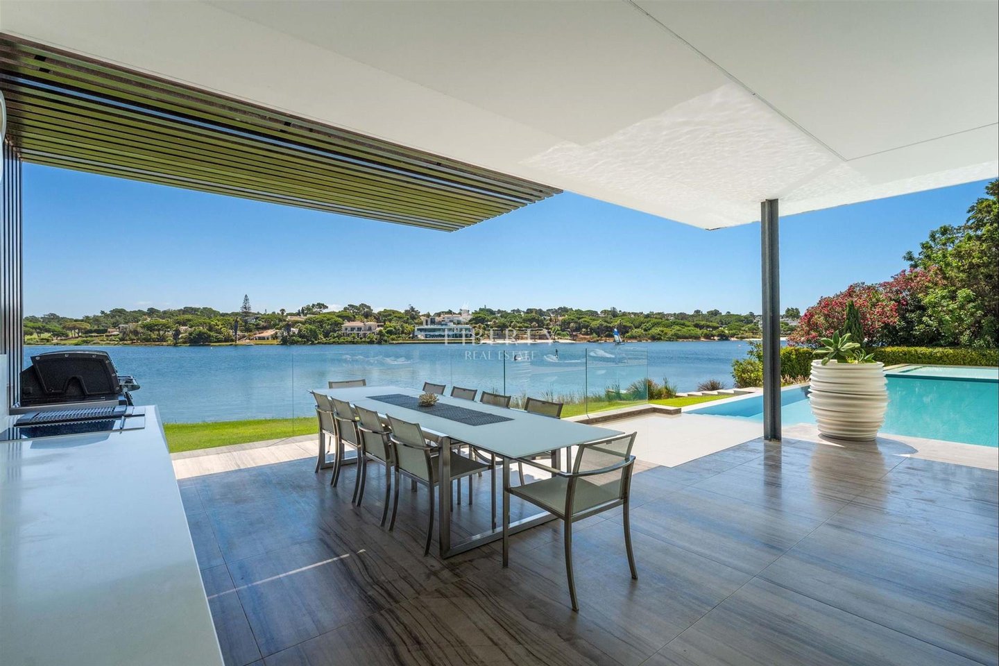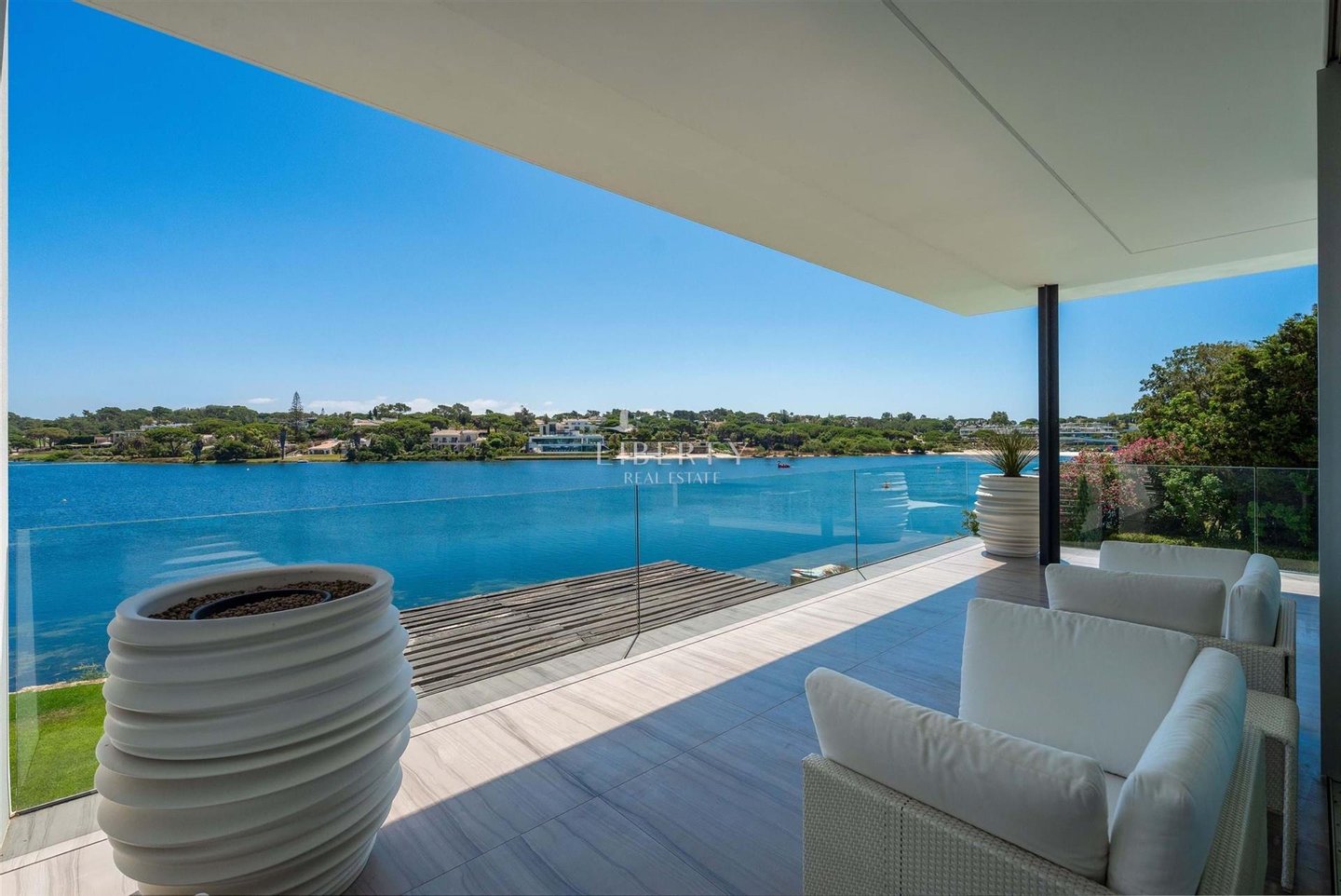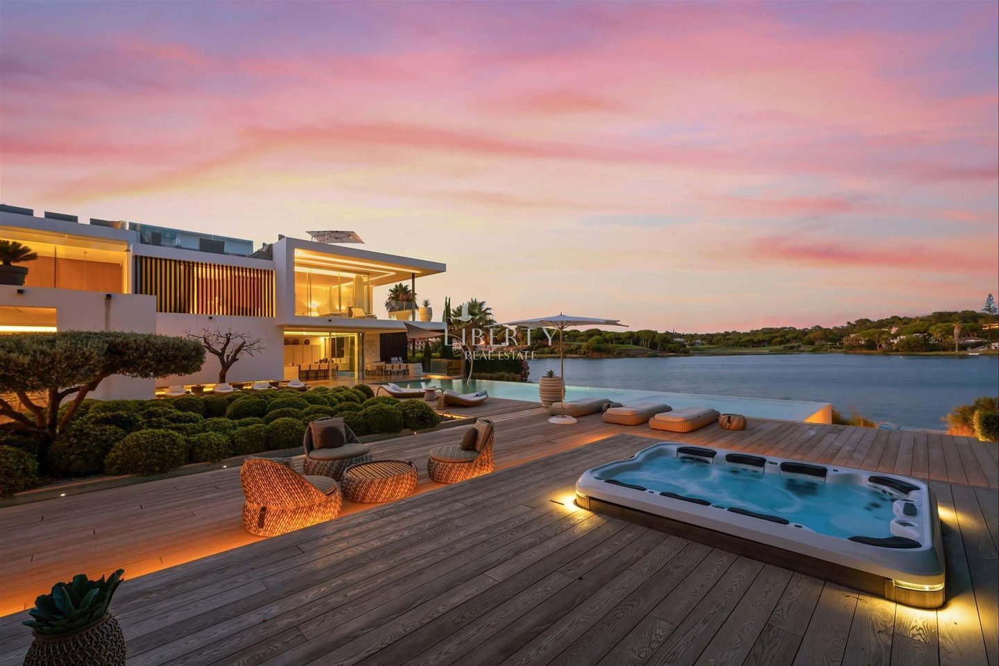 Auf einem erstklassigen, ultra-exklusiven Grundstück am Wasser in einer der begehrtesten Adressen der Algarve gelegen, bietet diese außergewöhnliche Villa am See in Quinta do Lago eine seltene Gelegenheit, eine Immobilie von unvergleichlichem Kaliber zu erwerben. Entworfen vom renommierten Architekten Vasco Vieira und mit exquisitem Innendesign von Pure Allure, verfügt diese atemberaubende, zeitgenössische Villa über einen Golftitel und genießt einen direkten Zugang zum See über einen eigenen privaten Anlegesteg. Immobilien dieser Statur und Umgebung sind auf dem lokalen Markt selten erhältlich. Dies ist eine Immobilie, die auf Schritt und Tritt ein Wow liefert, ein Zuhause, das Gelassenheit mit Raffinesse, Entspannung mit Unterhaltung verbindet.