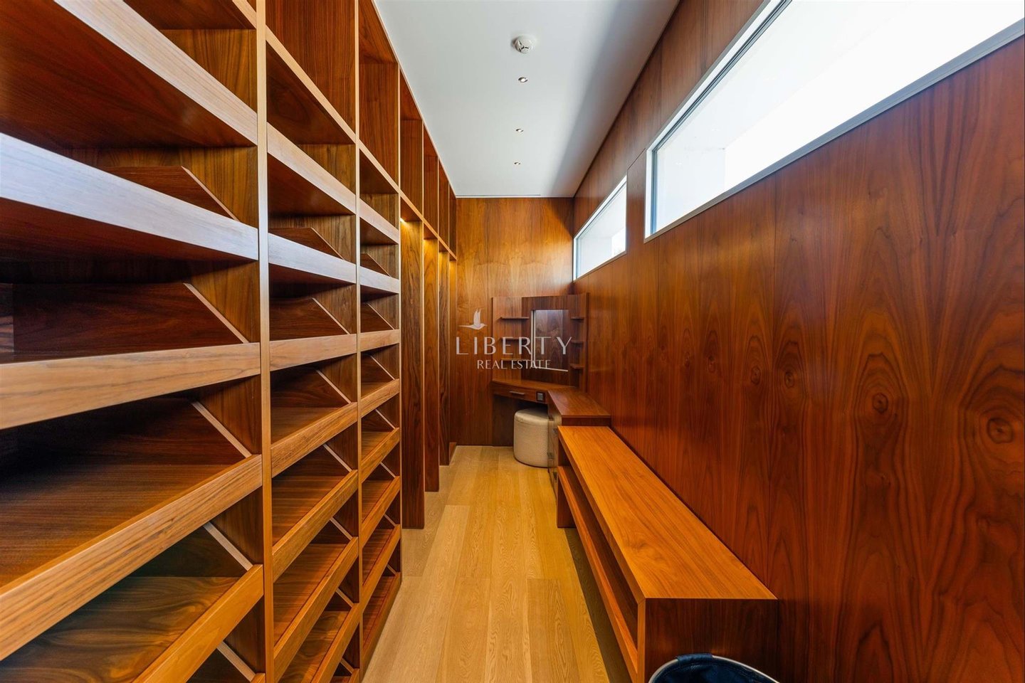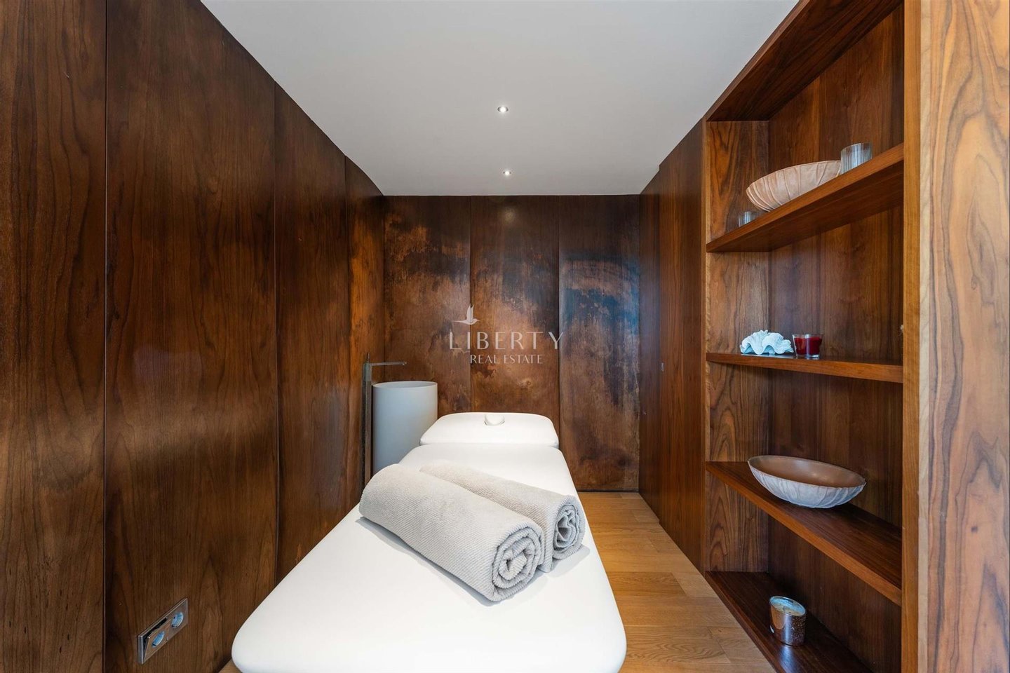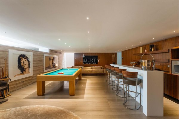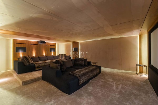 Die untere Ebene des Hauses ist eine Welt für sich - gewidmet der Freizeit, Unterhaltung und Wellness. Ein hochmodernes Heimkino mit Stufensofas, ein Spielzimmer mit Flügel und Billardtisch sowie eine stilvolle Bar mit Gaggenau-Kaffeemaschine und Weinkühlschränken schaffen die perfekte Umgebung für unvergessliche Zusammenkünfte. Das Spa im Boutique-Stil umfasst eine Sauna, ein Dampfbad, einen Innenpool, einen Behandlungsraum und einen Fitnessraum, der geschickt positioniert ist, um den Blick auf den See zu genießen und Wellness in einen täglichen Genuss zu verwandeln.