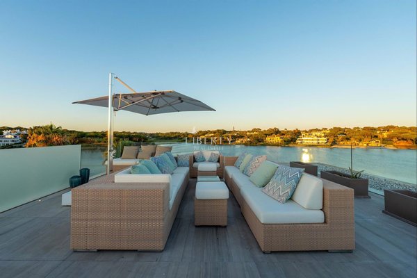 Die Dachterrasse ist ein herausragendes Merkmal und bietet einen Panoramablick auf den See, den Golfplatz und den Atlantischen Ozean. Hier finden Sie ein privates Tauchbecken, eine versunkene Lounge, eine Außenbar mit Kühlschrank, Spüle und Geschirrspüler sowie einen erhöhten Loungebereich, der sich ideal für Cocktails bei Sonnenuntergang oder Sternenbeobachtung unter dem Himmel der Algarve eignet.