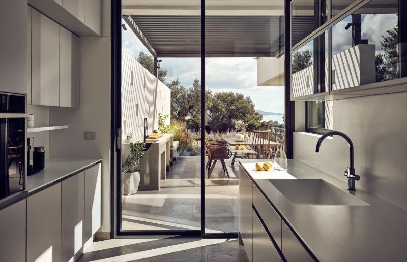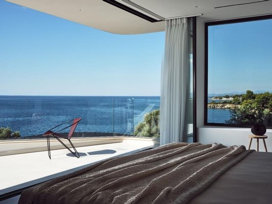 -Die 10 Meter langen offenen Glastüren löschen die Grenzen zwischen Innen und Außen aus und erzeugen das Gefühl, in der Umarmung des Meeres zu leben. Beim Betreten richtet sich der Blick sofort zum Horizont, wo der Himmel mit Wasser verschmilzt.