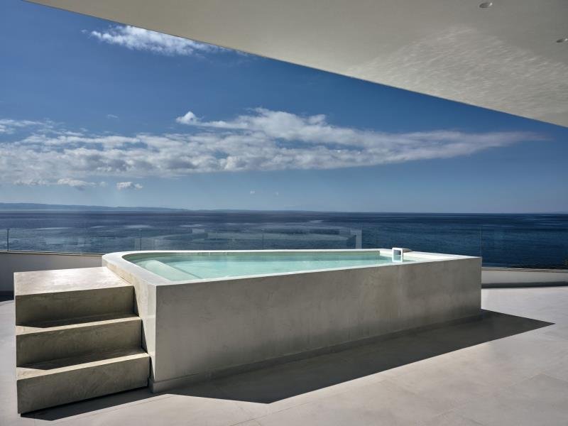 -Traumbecken: Ein 120 m² großer Pool, wie eine natürliche Erweiterung des Wohnzimmers, erzeugt eine Illusion der Unendlichkeit. Wenn man darin schwimmt, wird man Teil der Meereslandschaft.
