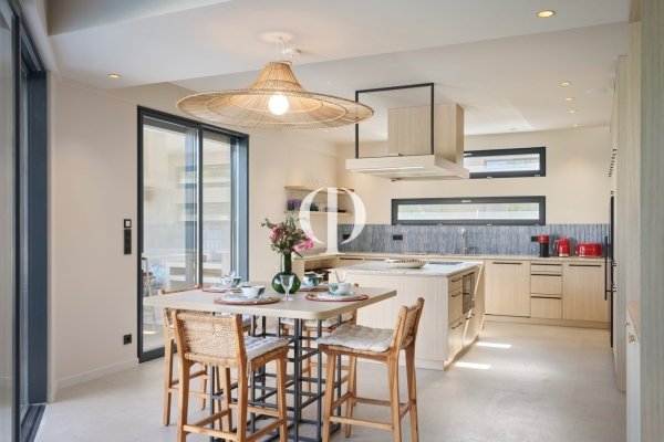 Diese Villa liegt 300 Meter von der Strandpromenade von Sainte-Maxime entfernt, in einem privaten Anwesen, eingebettet in üppiges Grün, einzigartig für ihre Architektur und tropische Atmosphäre. Das Wohnzimmer blickt auf den Pool und ist von überdachten Terrassen zum Entspannen und Essen am Wasser umgeben. Ein üppiger Garten umgibt das Anwesen und schafft eine intime Umgebung ohne übersehene Aussicht. Im Inneren ist die Atmosphäre sonnig, voller Leben und Farben, mit einem Gefühl von Raum und Natur. Die fünf Schlafzimmer verfügen über ein eigenes Bad mit privaten Terrassen, die sich perfekt zum Entspannen in völliger Privatsphäre eignen. Ein eigener Wellnessbereich umfasst einen Massageraum mit Sauna, einen Fitnessraum, einen Projektionsbereich und eine Entspannungslounge. Eine geräumige Garage rundet die vielen Annehmlichkeiten dieser Villa ab.