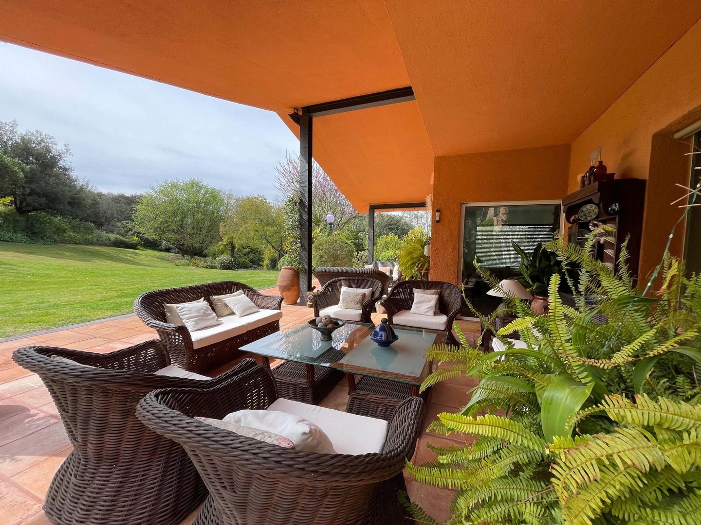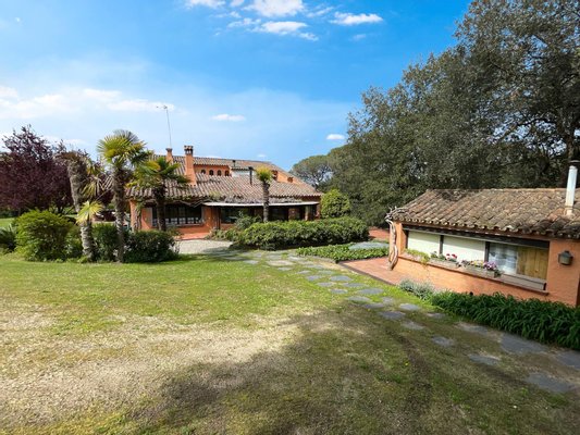 Das Haupthaus verfügt über mehrere Wohnzimmer mit Kamin, Ruhezonen und Mehrzweckräume, in denen man die Ruhe und Gemütlichkeit der ländlichen Umgebung genießen kann. Außerdem gibt es ein unabhängiges Gästehaus und einen voll ausgestatteten Servicebereich, der Flexibilität und Komfort für die ganze Familie bietet.
