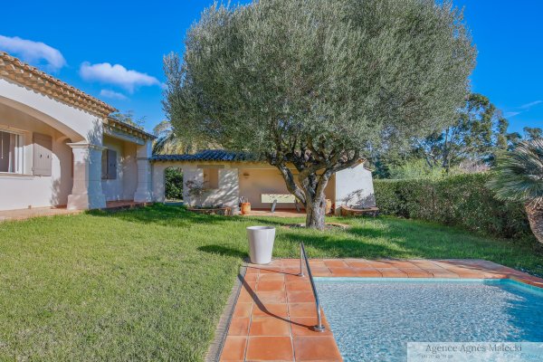 Exclusive to agnes malecki agency - residential area of cavalaire, in a quiet cul-de-sac, sought-after location close to beaches and shops. Sea views from this single-storey hacienda property. 240m2 of living space built on a flat, landscaped plot of 1660m2 with a swimming pool and garage. The ground floor comprises an entrance hall leading to a living/dining room with a fireplace and access to a beautiful terrace and garden (barbecue/sliding doors), a summer hacienda patio, a utility/pantry, an open-plan kitchen, a hallway, two toilets, four good-sized bedrooms, a bathroom, and two shower rooms. Garage adjoining. Attic. Carport. The property features reversible air conditioning in all living areas, mains drainage, automatic watering system, well, mosquito nets, and garden lighting. A 12 X 5m chlorine swimming pool with lighting and a charming pool house complete the property. Numerous terraces all around the property. Crawl space. Alarm system. No work required, everything within walking distance, reasonable price!
