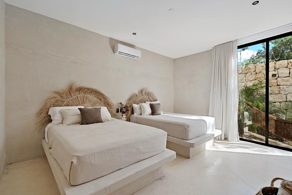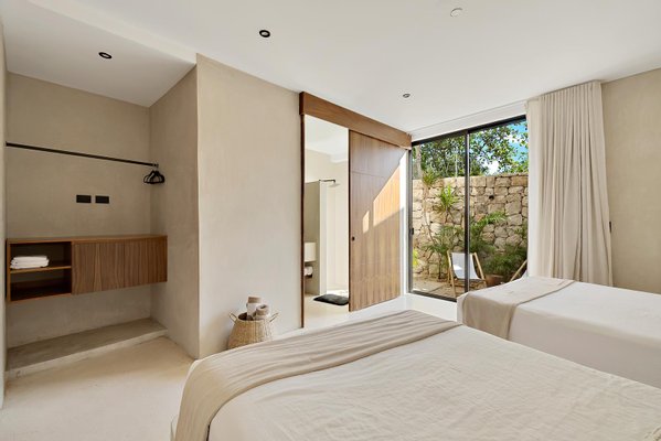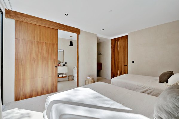 Der erste Stock ist ein Refugium der Privatsphäre und des Luxus. Das Hauptschlafzimmer bietet ein Ankleidezimmer, ein eigenes Bad und eine private Terrasse mit Whirlpool. Zwei weitere Schlafzimmer auf dieser Ebene verfügen ebenfalls über ein eigenes Bad, das Komfort und Privatsphäre für alle Bewohner oder Gäste gewährleistet.
