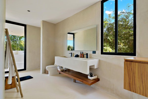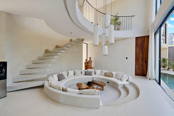 Mit 436 m² Baufläche, die sich auf drei Ebenen auf einem Grundstück von 816 m² verteilen, kombiniert diese Villa umweltfreundliche Materialien wie Chukum, polierten Beton und regionale Hölzer und schafft ein Design, das anmutig mit dem Anwesen und seinen zukünftigen Eigentümern altert.