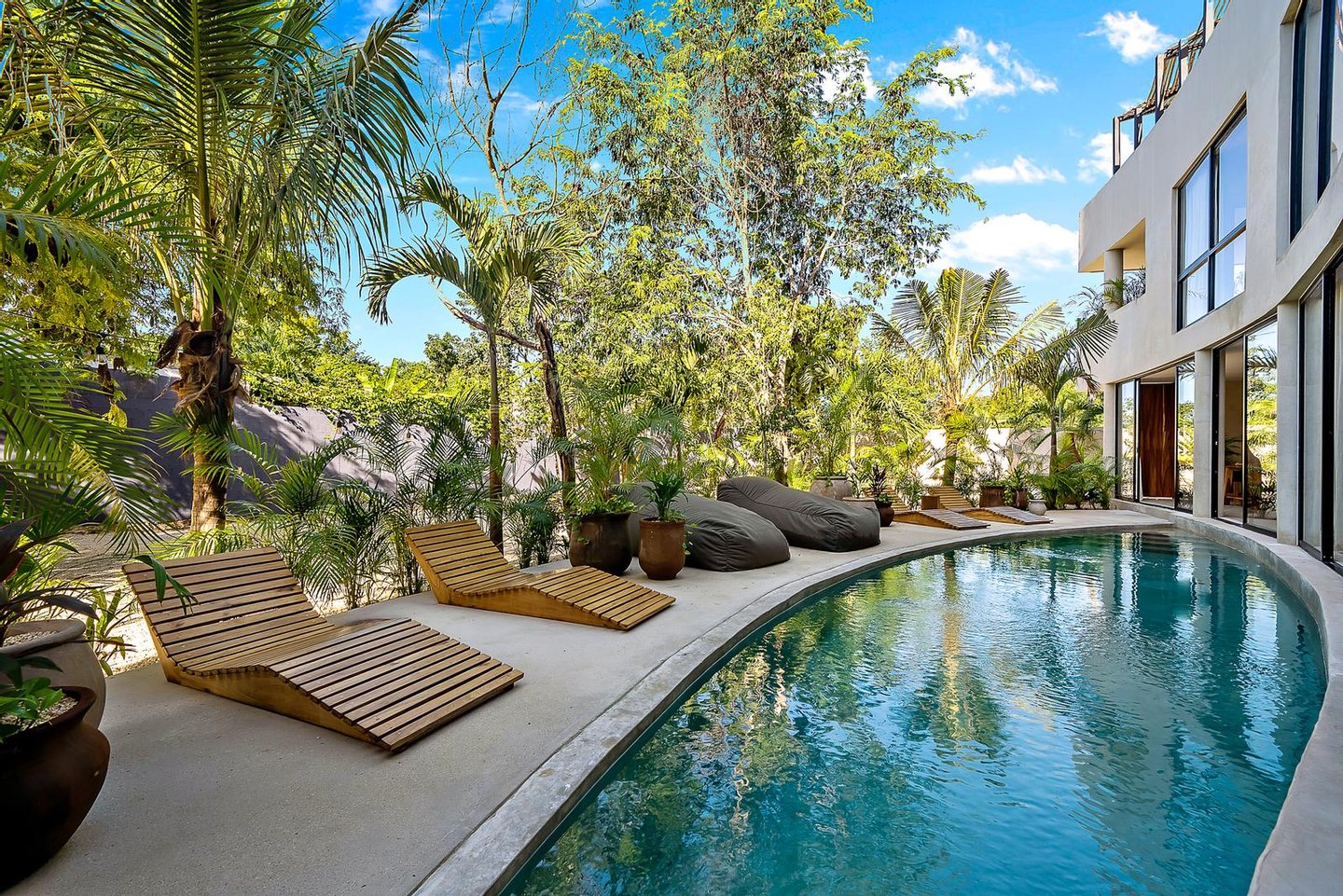 Willkommen in dieser atemberaubenden Villa mit 5 Schlafzimmern, einem prächtigen Schaufenster der Architektur von Tulum, das einen exklusiven Lebensstil in einer der begehrtesten Gegenden der Riviera Maya bietet.