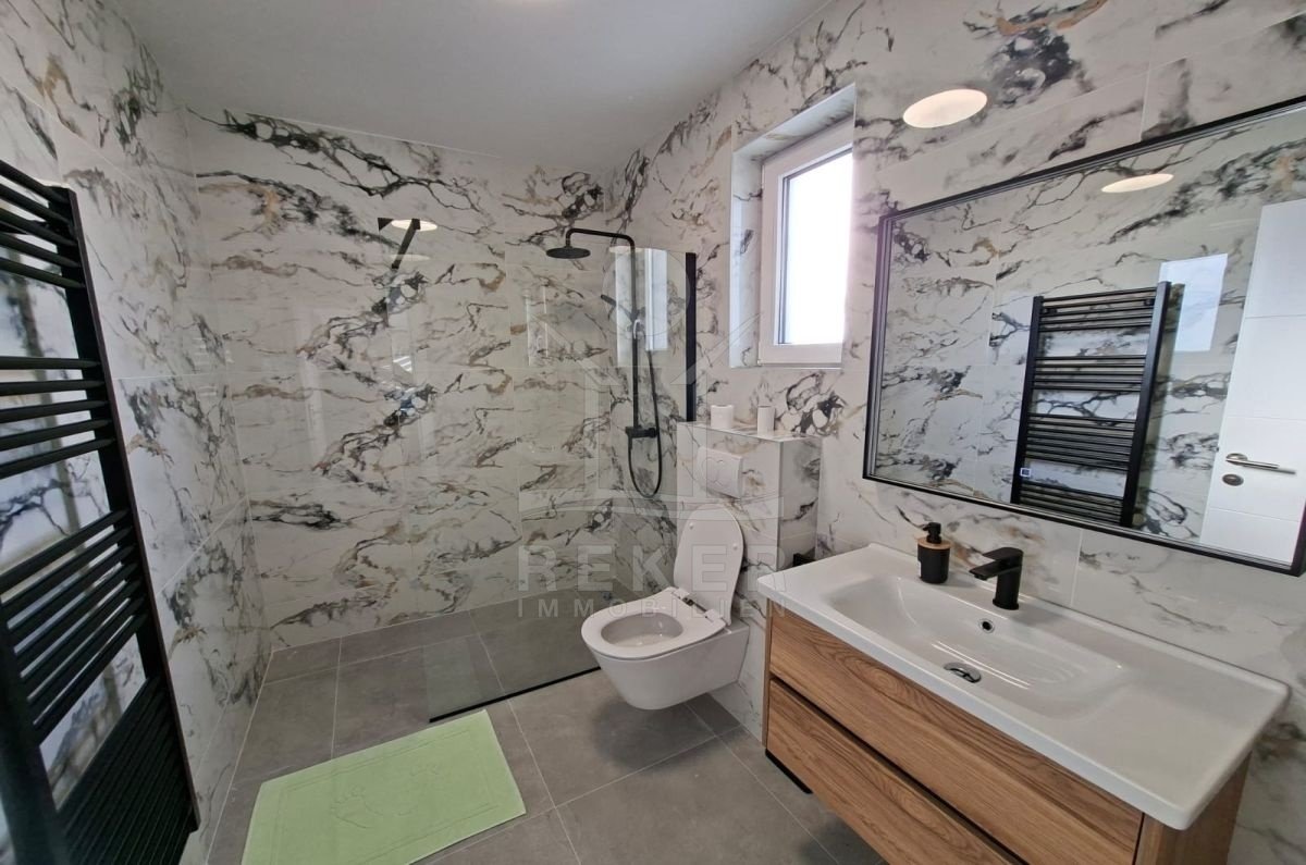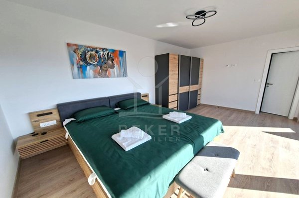 Nur rund 750 Meter vom Meer entfernt entsteht diese moderne Doppelhaushälfte auf der Insel Krk, ruhig am Rand der Grünzone. Sie genießen eine naturnahe Umgebung und bleiben dennoch nah an der Küste. Zwei private Stellplätze stehen direkt am Haus