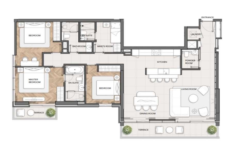 Willkommen in den Residences Du Port in Dubai Marina! Wenn Sie dieses luxuriöse Apartment mit drei Schlafzimmern betreten, werden Sie von raumhohen Fenstern begrüßt, die einen atemberaubenden Blick auf den Yachthafen bieten. Der geräumige Wohnbereich ist ideal, um Gäste zu empfangen oder sich mit der Familie zu entspannen. Die Annehmlichkeiten der Residences Du Port im Resort-Stil sind wirklich außergewöhnlich. Sie können auf der Poolterrasse im Beachclub-Stil faulenzen, sich im hochmodernen Wellness-Studio mit Fitnessraum, Sauna und kaltem Tauchbecken entspannen oder einen Film im privaten Kino genießen. Für Golfbegeisterte gibt es einen Hightech-Golfsimulator, an dem Sie Ihren Schwung üben können. Der Concierge-Service ist rund um die Uhr verfügbar und kümmert sich um alle Ihre Bedürfnisse. Die Kinder werden sich über die Kinderkrippe freuen, während Sie im wunderschön angelegten Gartenbereich ein BBQ genießen können. Eine sichere Tiefgarage und Hochgeschwindigkeitsaufzüge sorgen für zusätzlichen Komfort in dieser prestigeträchtigen Wohnanlage.\n\nDie von der Riviera inspirierte Architektur und die hochwertige Ausstattung dieser Wohnung bieten ein wahrhaft luxuriöses Wohnerlebnis. Verpassen Sie nicht die Chance, Residences Du Port zu Ihrem neuen Zuhause in Dubai Marina zu machen!
