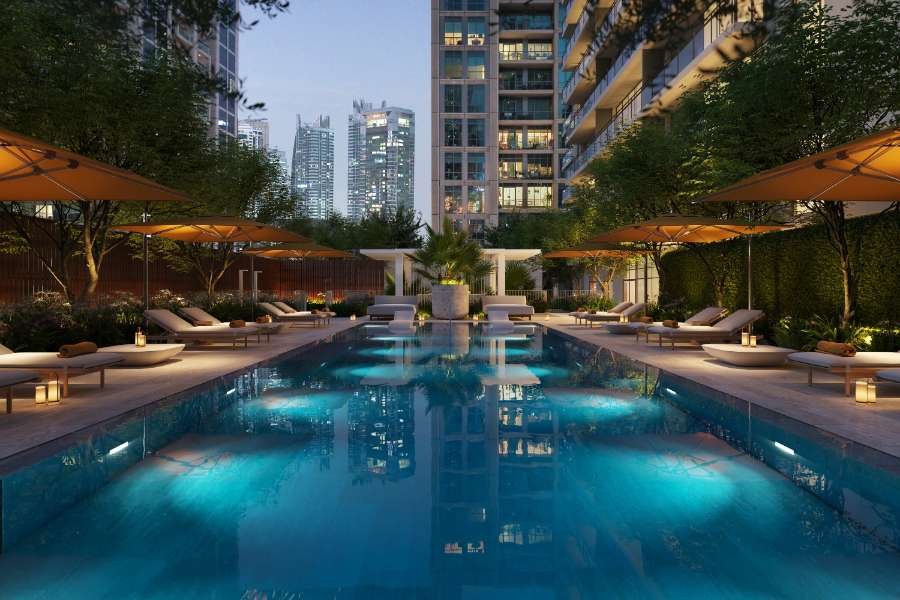 Die Residenz bietet auch verschiedene geschäftliche und soziale Annehmlichkeiten, darunter ein Residents' Café & Co-Working Lounge für Remote-Arbeit oder Entspannung, einen privaten Sitzungssaal, der mit der neuesten Technologie für Meetings und Veranstaltungen ausgestattet ist, eine Residents' Lounge mit einer Bibliothek und Spieltischen für die Freizeit und ein privates Kino für intime Filmvorführungen.