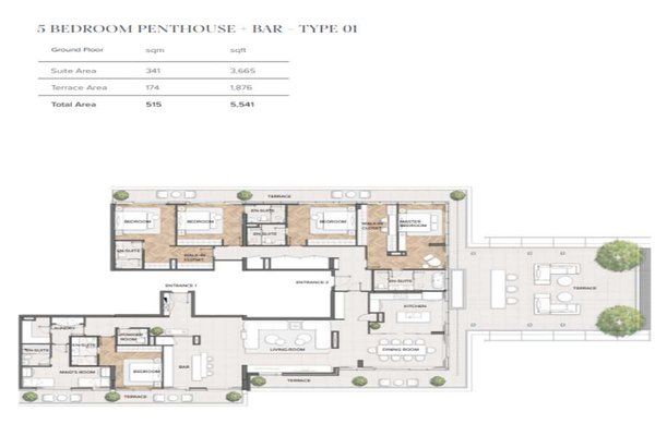 Willkommen in den luxuriösen Résidences Du Port im Herzen von Dubai Marina. Wenn Sie dieses exklusive Penthouse betreten, werden Sie von fünf geräumigen Schlafzimmern begrüßt, von denen jedes einen atemberaubenden Blick auf den Yachthafen bietet. Das Wohnzimmer ist elegant mit modernem Dekor eingerichtet und schafft eine raffinierte und dennoch einladende Atmosphäre, um Gäste zu unterhalten oder einfach zu entspannen. Vom Boden bis zur Decke reichende Fenster durchfluten den Raum mit natürlichem Licht und betonen die hohen Decken und die eleganten Oberflächen. Auf der großzügigen Terrasse können Sie im Freien speisen oder einfach nur die Seele baumeln lassen, während Sie den atemberaubenden Blick auf die Skyline von Dubai genießen. Von der Terrasse aus haben Sie auch Zugang zur Dachterrasse, einer privaten Oase, in der Sie die Sonne genießen oder abends mit Freunden und Familie einen Cocktail trinken können. Für diejenigen, die Entspannung und Wellness suchen, bietet das Penthouse Zugang zum Wellness-Studio, das ein voll ausgestattetes Fitnessstudio, ein Yogastudio, ein Spa mit Dampfbad und Sauna sowie ein kaltes Tauchbecken umfasst. Das Pooldeck im Beach-Club-Stil lädt mit seinem Infinity-Pool, den Cabanas und den Grillplätzen zu gemütlichen Nachmittagen am Wasser ein.\n\nGeschäfts- und gesellschaftliche Zusammenkünfte sind im Café und in der Co-Working-Lounge, im Sitzungssaal und in der Bewohnerlounge, die alle mit modernster Technik und stilvollem Mobiliar ausgestattet sind, problemlos möglich. Familien werden die Kinderkrippe und den Kinderspielplatz zu schätzen wissen, ebenso wie die sichere Tiefgarage und den Parkservice, der für zusätzlichen Komfort sorgt. Dank des 24-Stunden-Sicherheits- und Wartungsdienstes können die Bewohner sicher sein, dass ihr Komfort und ihre Sicherheit in diesem außergewöhnlichen Penthouse von Résidences Du Port oberste Priorität haben.