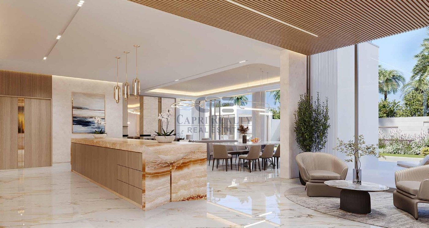 Capri Realty presents an exclusive 5-bedroom lagoon-facing standalone mansion in South Bay Phase 4 by Dubai South Properties. Designed for luxury living, the home features floor-to-ceiling windows, all en-suite bedrooms, a closed kitchen fitted with Bosch and Miele appliances, maids and drivers rooms, private elevator, private pool, and expansive modern interiors.