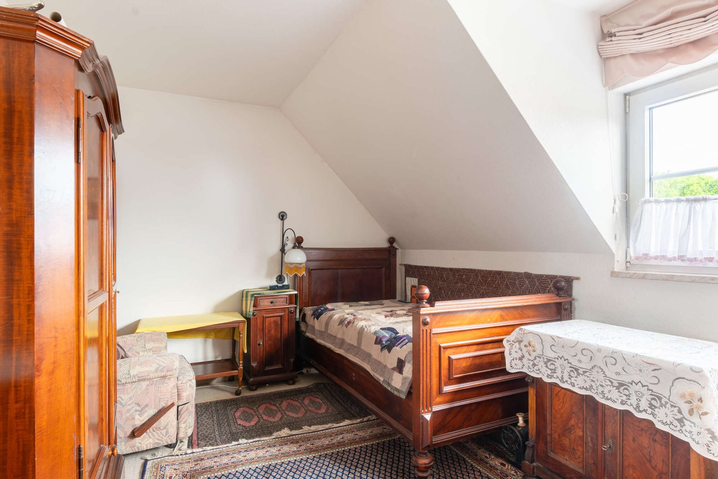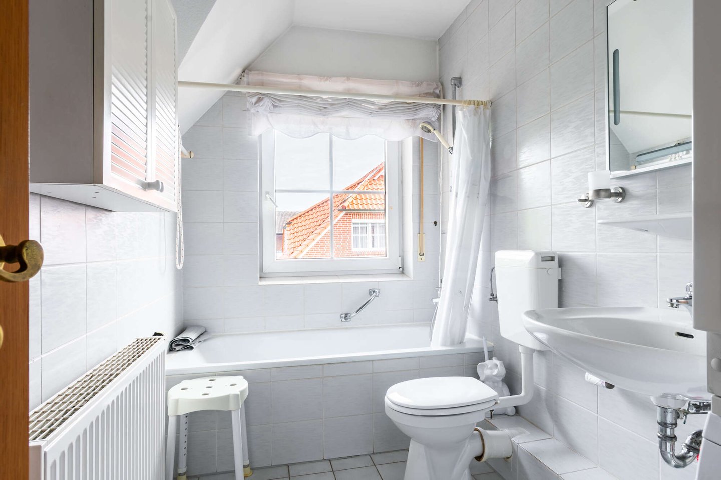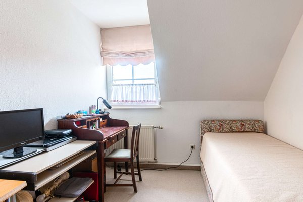 Das Badezimmer ist mit einem Fenster sowie einem Waschmaschinenanschluss ausgestattet. Direkt angrenzend befindet sich ein flexibel nutzbares Zimmer – ideal als Büro oder Kinderzimmer – sowie das ruhig gelegene Schlafzimmer.