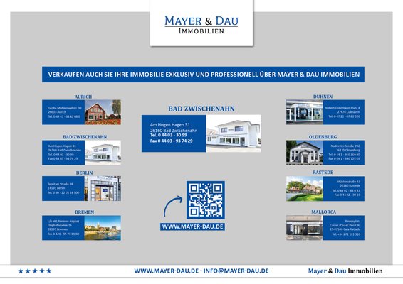 Lassen Sie die Eindrücke gerne bei einem Besichtigungstermin auf sich wirken. Hierfür steht Ihnen Frau Anja Kreklau unter der Telefonnummer 04403-3099 gerne zur Verfügung.