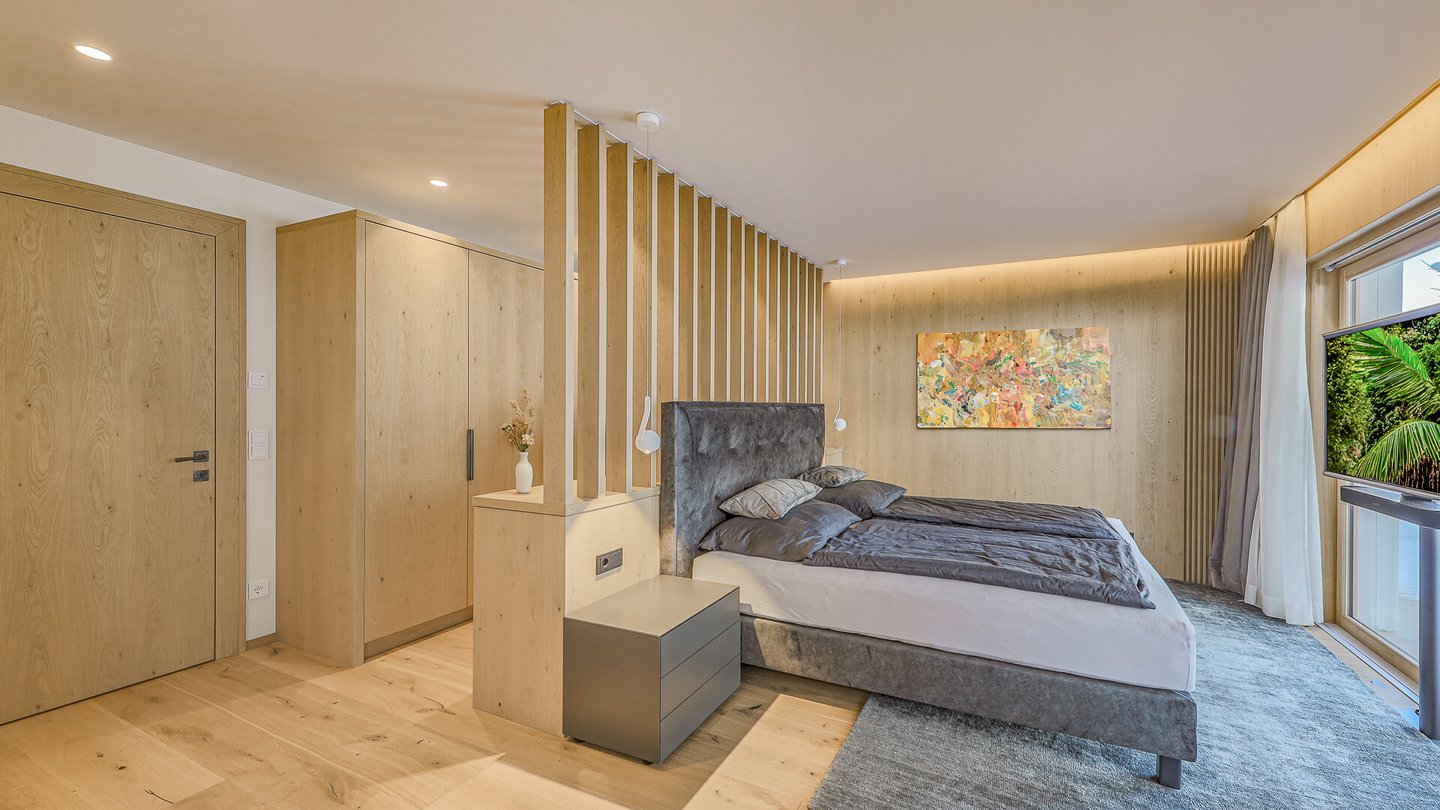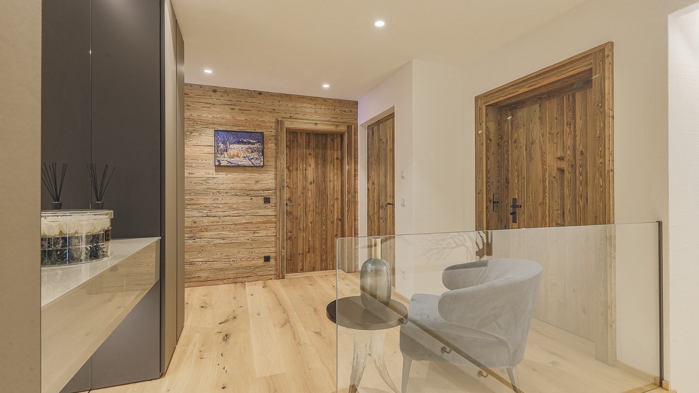 Mit dem Lift oder über die innenliegende Treppe gelangt man in den "unteren Trakt" der Wohnung.