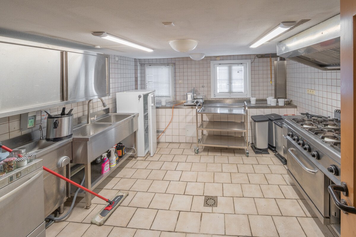 Im Erdgeschoss befinden sich zwei Küchenräume, zwei WCs, eine Einbauküche, ein Waschraum sowie ein großes Wohnzimmer. Der charmante Eingangsbereich erlaubt einen flexiblen Zugang zu diesen Räumen.