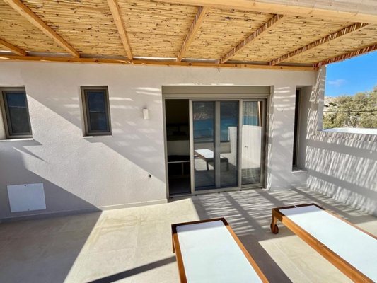 Erleben Sie Küstenleben vom Feinsten in diesem wunderschön renovierten Strandhaus mit drei Schlafzimmern und einer Gesamtwohnfläche von 112 m² zuzüglich Balkonen. Es befindet sich in idealer Lage im charmanten Küstenort Pachia Ammos, nur 15