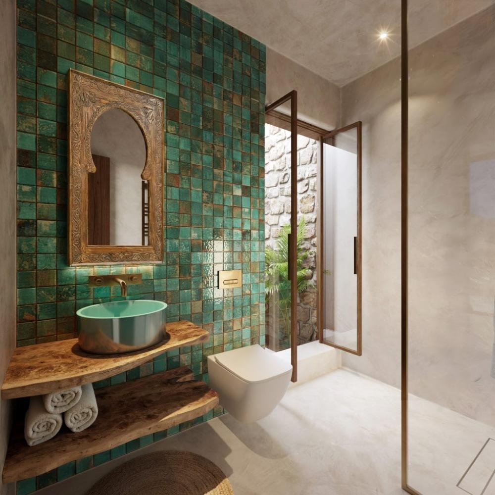 Schattige Esspergolen, eine gemütliche Feuerstelle und eine großzügige Terrasse laden ganzjährig zum Verweilen im Freien ein. Natürliche Materialien – lokaler Stein, warme Holzelemente und handgefertigte Fliesen – verleihen den Villen Struktur und Authentizität und damit einen zeitlosen, bodenständigen Charakter.