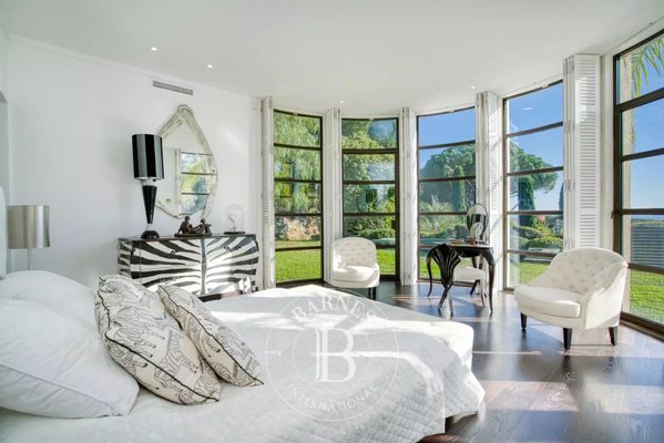 Im Obergeschoss vervollständigen ein Wohnzimmer, das sich auf eine große Terrasse mit Meerblick öffnet, vier Schlafzimmer mit eigenem Bad sowie zwei große Terrassen den Schlafbereich und bieten Komfort und Privatsphäre.