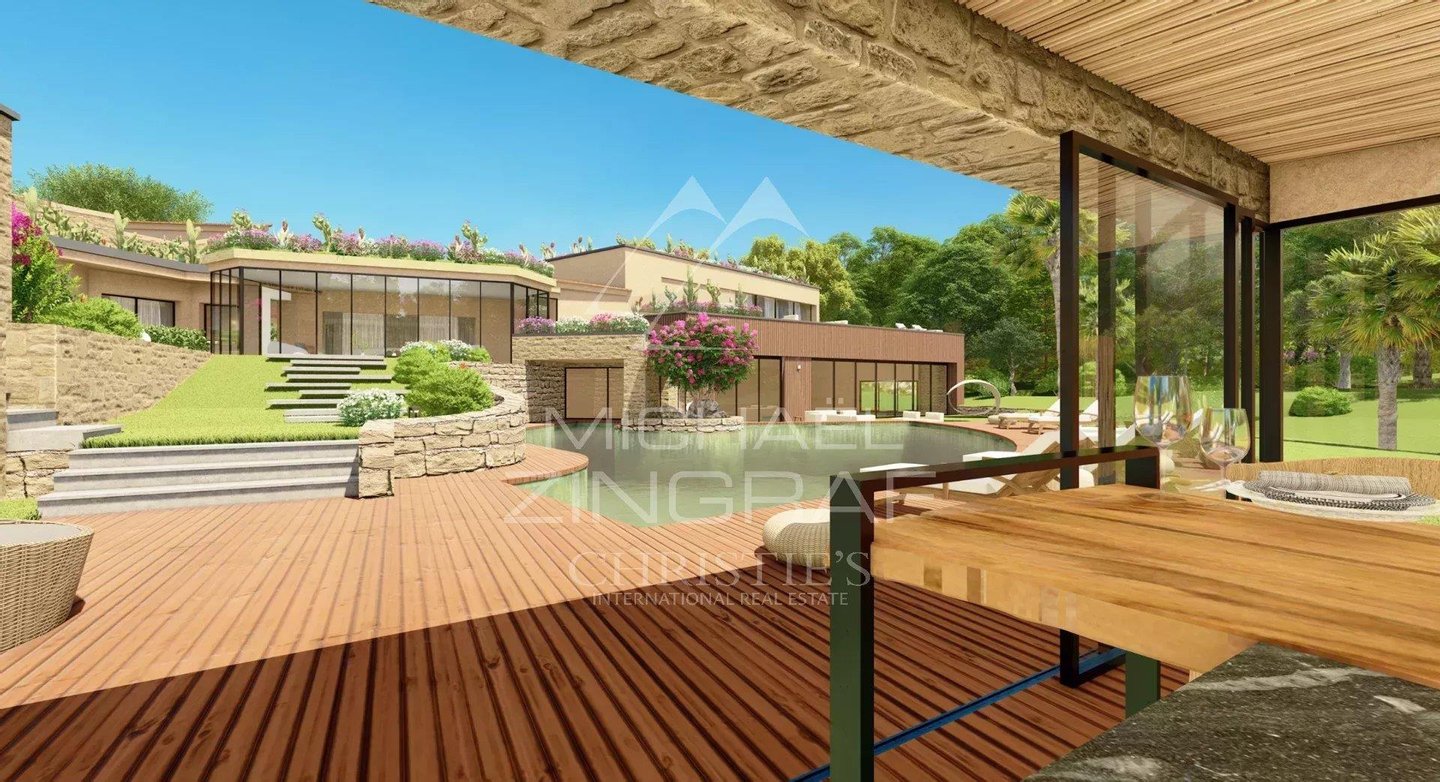Im Herzen des geschlossenen und sicheren Bereichs der Parcs de Mougins, herrliches Anwesen, das komplett renoviert und erweitert wurde. Das Hotel liegt auf einem flachen Grundstück von ca. 10.000 m2 in absoluter Ruhe, mit ca. 1.000 m2 Wohnfläche, bestehend aus 6 Schlafzimmern mit Bad, einer unabhängigen Hausmeisterunterkunft von 52 m2, einer Garage für 8 Autos, einem Außenpool mit Poolhaus und einem Hallenbad mit Fitnessraum, einem Kinoraum. Die einzigartig gestaltete Architektur, die Lage und die Volumen dieses Anwesens sind absolut bemerkenswert.