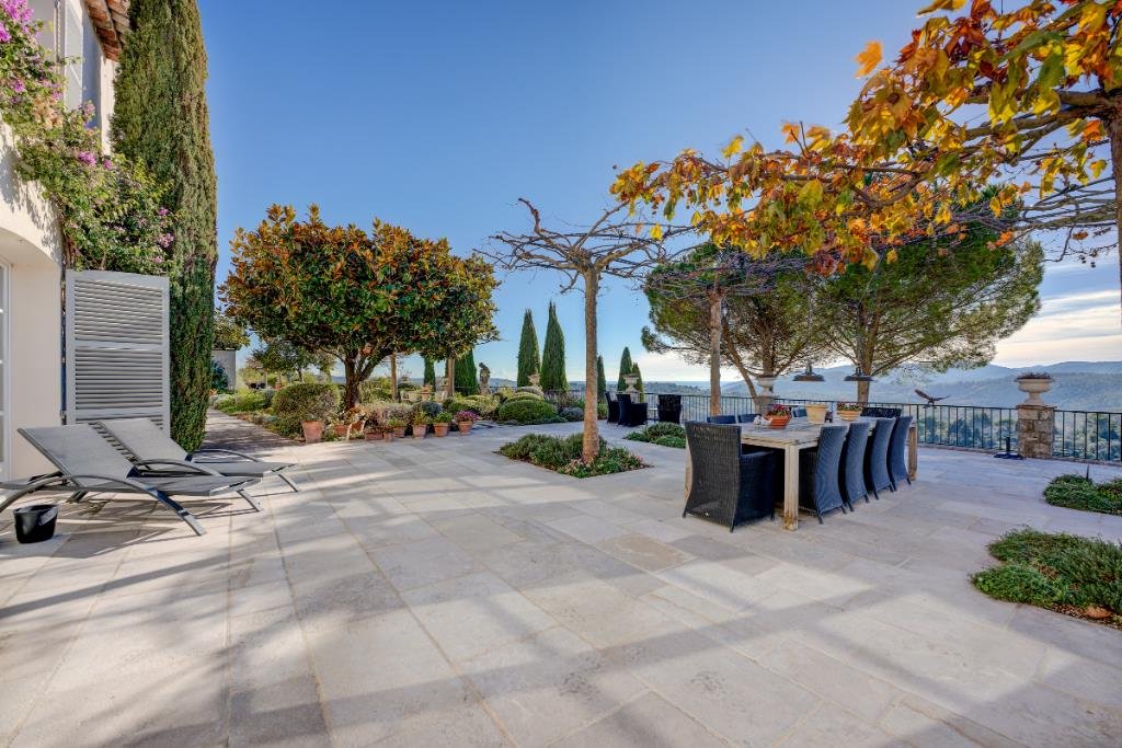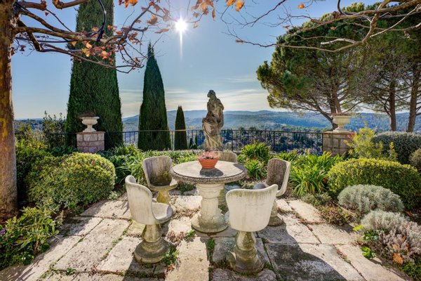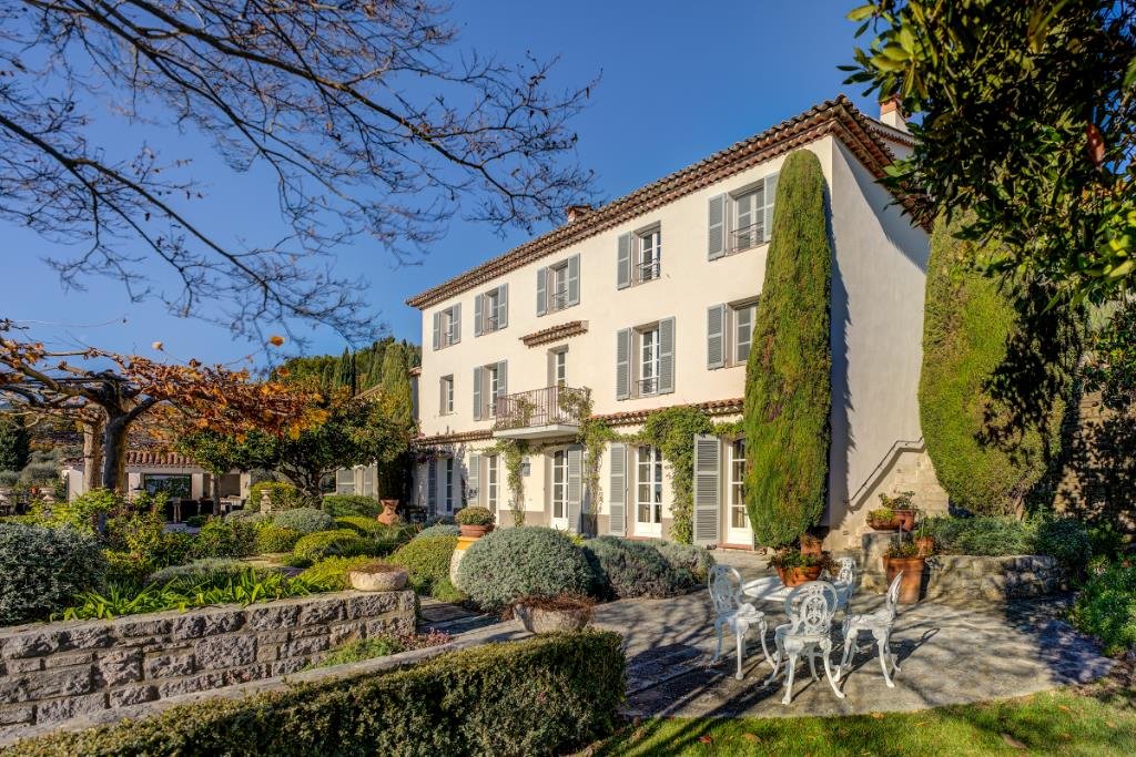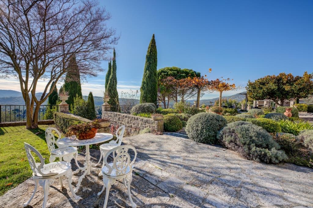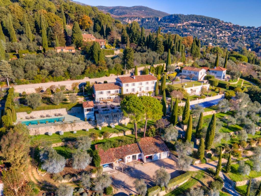 o Grasse, nur 15 km von Cannes mit seinen feinen Sandstränden und dem exklusiven Yachthafen entfernt. Nizza liegt im Osten, nur 30 km vom Stadtzentrum entfernt und fungiert als Flughafen mit täglichen Direktflügen in eine große Anzahl europäischer Hauptstädte. Dank seiner relativ großen Höhe, zwischen 300 und 400 Metern über dem Meeresspiegel, ist das mediterrane Klima sehr angenehm und die Sommerhitze ist nie unerträglich.