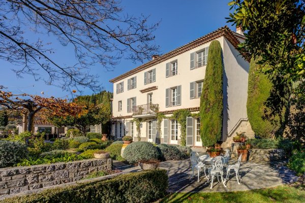 o Die Villa und das Anwesen "Maison Blanche" bestehen aus fünf separaten Wohnungen, deren Haupthaus einen atemberaubenden Blick auf das üppige Tal in den Hügeln hinter Cannes bietet.