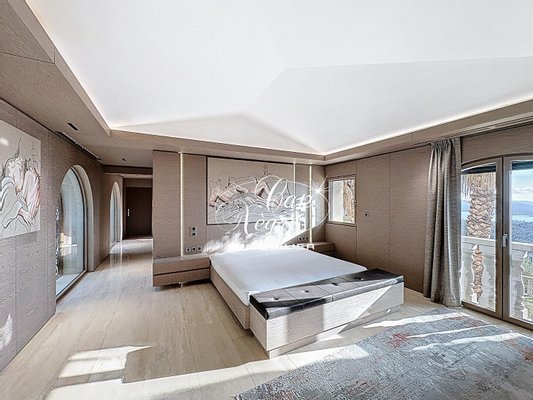 Es verfügt über ein großes Wohnzimmer mit Kamin, eine offene Küche und außergewöhnliche Außenbereiche: Terrassen, Sommerküche, schattiges Wohnzimmer und einen herrlichen Infinity-Pool mit Blick auf das Meer. Die sechs Schlafzimmer mit eigenem Bad verfügen alle über Meerblick, eingebauten Stauraum und erstklassige Dienstleistungen.