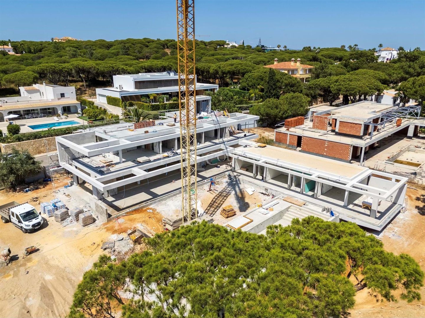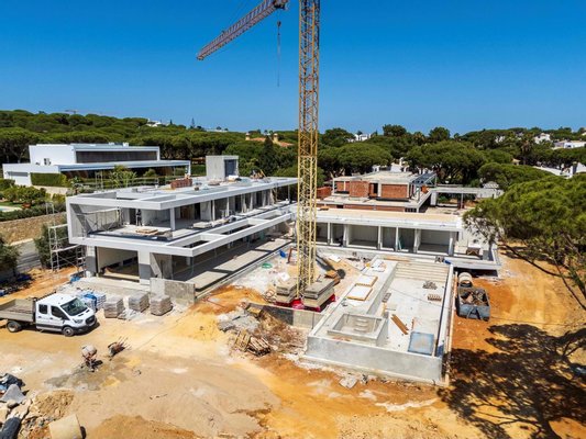 Diese im Bau befindliche Villa befindet sich in der angesehenen Quinta das Salinas, nur 150 Meter von der Promenade entfernt, die Quinta do Lago mit dem Strand von Ancão verbindet. Auf einem großzügigen Grundstück von 3.341 m² gelegen, vereint dieses