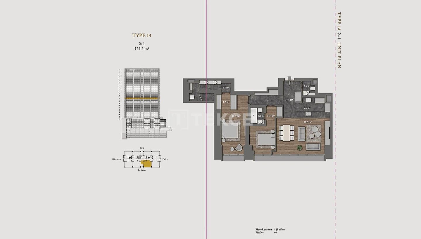 Wohnungen in einer ultra-luxuriösen Residenz in Şişli Nişantaşı & 13 Die schlüsselfertigen Wohnungen befinden sich in Şişli Nişantaşı, dem Geschäfts-, Wohn- und Modezentrum der europäischen Seite Istanbuls. Dank ihrer zentralen Lage sind alle
