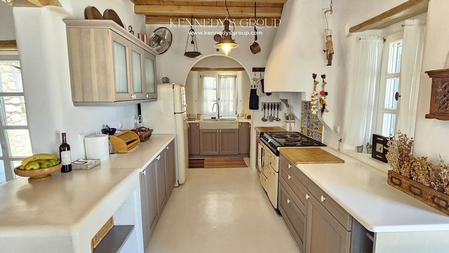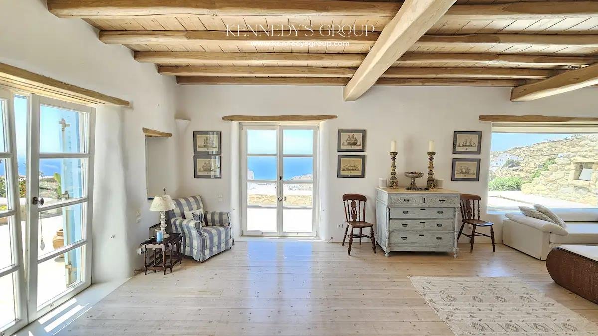 Diese Häuser sind sorgfältig für ultimativen Komfort und Privatsphäre konzipiert. Mit insgesamt 10 Schlafzimmern und 10 Bädern können sie bequem eine große Familie oder mehrere Gäste beherbergen. Beide Villen verfügen über wunderschön gestaltete Küchen und sonnendurchflutete Wohnbereiche, die eine helle und luftige Atmosphäre schaffen, die sich perfekt für das Inselleben eignet. Das elegante Interieur zeigt den authentischen mykonischen Stil mit hochwertigen Oberflächen wie Stein, dekorativen Zementbeschichtungsböden und einer Mischung aus Fliesen und Holz. Die Immobilien befinden sich in ausgezeichnetem Zustand und verfügen über moderne Annehmlichkeiten wie Aluminiumrahmen, doppelt verglaste Fenster und hochmoderne Überwachungskameras.